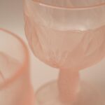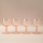 Prachtige Italiaanse roze wijnglazen. Design van Taitu Milano, gemaakt van satin glass/frosted glass met een bloemen reliëf.