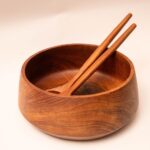Deze set brengt direct warmte op tafel! Het is een grote houten schaal compleet met het bijpassende slabestek. Alles is gemaakt van teakhout en de set heeft een mooie, diepe kleur. Teak is supersterk en ideaal voor in de keuken. De schaal is perfect voor een flinke salade, maar je kunt hem ook gebruiken als fruitschaal. De set is afkomstig uit Thailand en geeft je eettafel meteen een gezellige, natuurlijke sfeer.