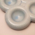 Een charmante lichtblauwe keramiek schaal met zes ronde donutvormige vakjes. Dit multifunctionele design item is perfect als eierhouder, sieradenbakje of voor het serveren van kleine hapjes.