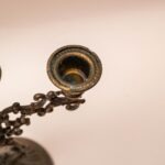 Een dramatische sfeermaker! Dit is een prachtige, zware messing kaarsenhouder met ruimte voor drie kaarsen. De houder heeft een Barokke, bijna Gotische stijl met veel klassieke krullen en versieringen. Het messing heeft een warme gloed. Dit stuk is perfect als je een statement wilt maken op je schouw of eettafel. Steek de kaarsen aan en geniet van de grandeur en de sfeer die hij met zich meebrengt. Een echte blikvanger vol karakter.