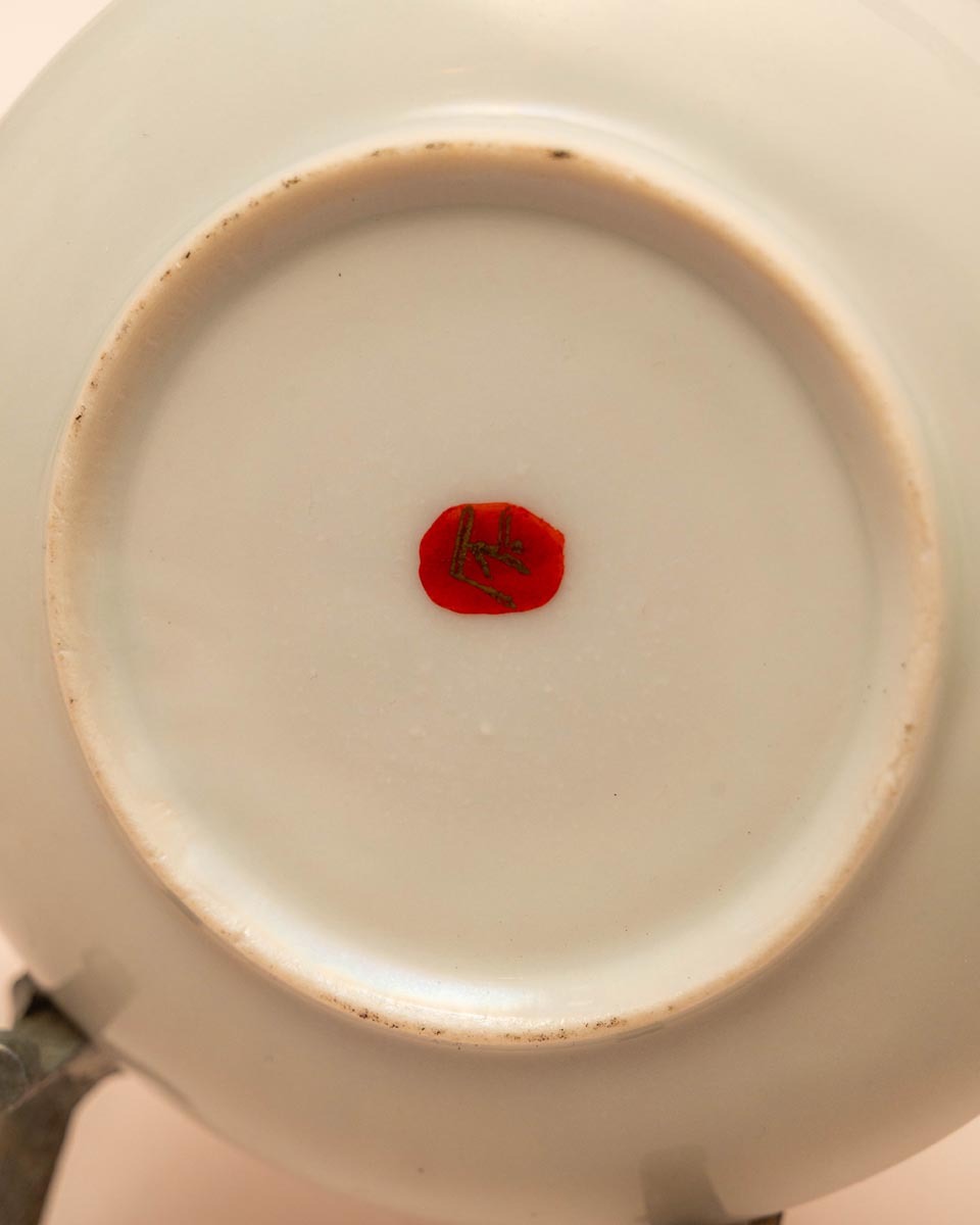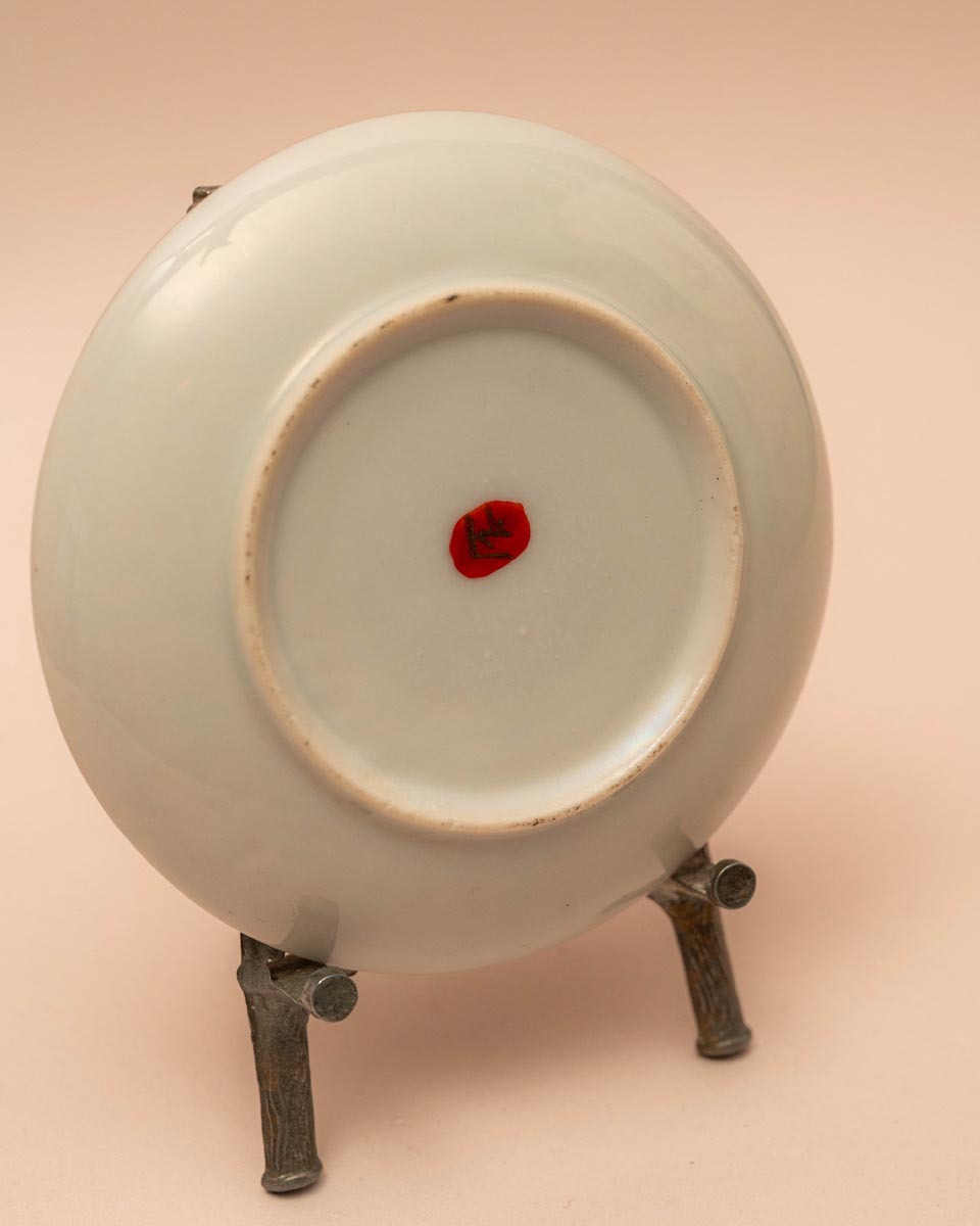 Het ‘Thousand Faces’ decor (ook wel bekend als Senjinkoku) is een klassiek Japans motief dat vaak monniken, wijzen of onsterfelijken afbeeldt. Imari porselein, vernoemd naar de haven van waaruit het naar Europa werd verscheept, staat bekend om zijn karakteristieke kleurenpalet van onderglazuur blauw, ijzerrood en goud. Dit specifieke schoteltje is een prachtig voorbeeld van de Meiji-stijl, waarbij de focus lag op extreem fijn en rijk gedecoreerd handwerk.