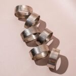 Dit is een mooie, complete set van zes servetringen, perfect voor de feestdagen of een chic diner. Ze zijn verzilverd, wat zorgt voor die prachtige, klassieke glans. De ringen zijn versierd met een subtiel, geribbeld motief. Hierdoor voelen ze degelijk aan en hebben ze een mooie textuur die het licht goed vangt. Ze maken van een simpel linnen servet meteen een elegante toevoeging aan je tafelsetting. Klaar om je gasten in stijl te ontvangen!