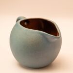 Deze bijzondere kan is afkomstig uit een Israëlische kibboets en draagt de markering 25 en Israel BROR CHAIL. De buitenkant is helder blauw, de binnenkant warm bruin geglazuurd. De platte kant bij het handvat geeft ‘m een speels detail. Mooi als waterkan, bloemenvaas of gewoon als opvallend stukje keramiek in huis.